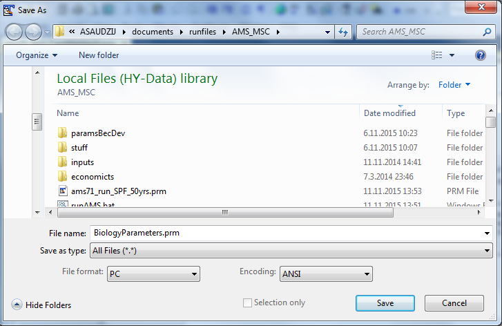 PC, Mac and Unix computers use different syntax to indicate line end. This means that should you receive files from someone using a different operating system, the PRM files will have to be converted to match your local operating system. In Linux this can be done using the ‘flip’ software. If you only have a few files this can be done by simply opening the parameter files in a text editor (e.g. TextPad in Windows or TextWrangler in Mac) and saving them in a format suitable for your operating system (see menu “File Format”). More info on line terminators can be found on the wiki here or by searching in your favourite search engine.